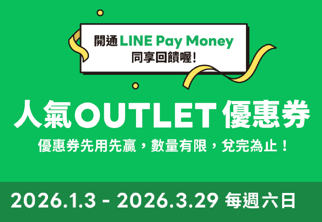 ◎LINE Pay 付款金額可能不適用 OUTLET 銀行滿額禮活動,請參考現場公告。